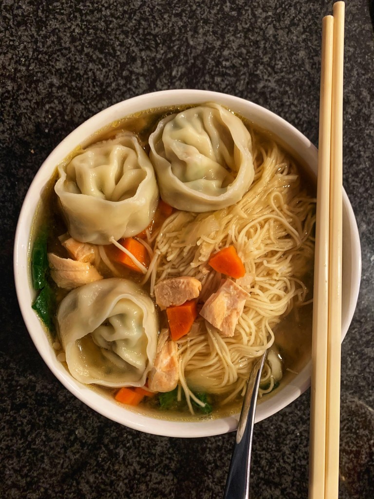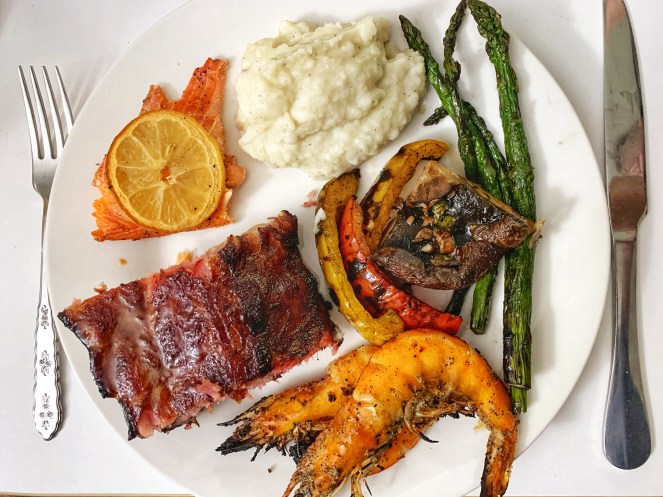 Homemade: crab mac & cheese, eggs and rice, baked salmon, charred brussel sprouts and roasted fingerling potatoes, cheese quesadilla, lemon garlic shrimp, onigiri, boba-ish, kuaw seen over rice, salad, fried shrimp, quinoa, charred brussel sprouts, tuna and crackers, mussels in white wine sauce, pasta, grilled veggies (asparagus, bell peppers, brussel sprouts), grilled shrimp, smoked ribs, salmon on a cedar plank, grilled veggies (portobella mushroom caps, asparagus, bell peppers), mashed potatoes, dan dan noodle soup, boiled peanuts, cauliflour subsi with dosas, mac cheese, instant noodles with shrimp, spinach and asparagus, raspberry “soup”