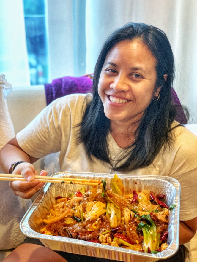 Homemade: pori upma (Indian puffed rice dish), salmon khao poon, pho, boba (made with pre-made milk tea), layered taco dip, spinach subsi, shrimp tacos, beyond meat tacos, refried bean tacos, nachos, layered taco dip, spicy sugar snaps, fried oysters, cabbage soup, crab legs, pho, shrimp curry with dosas, eggs and rice, khichdi