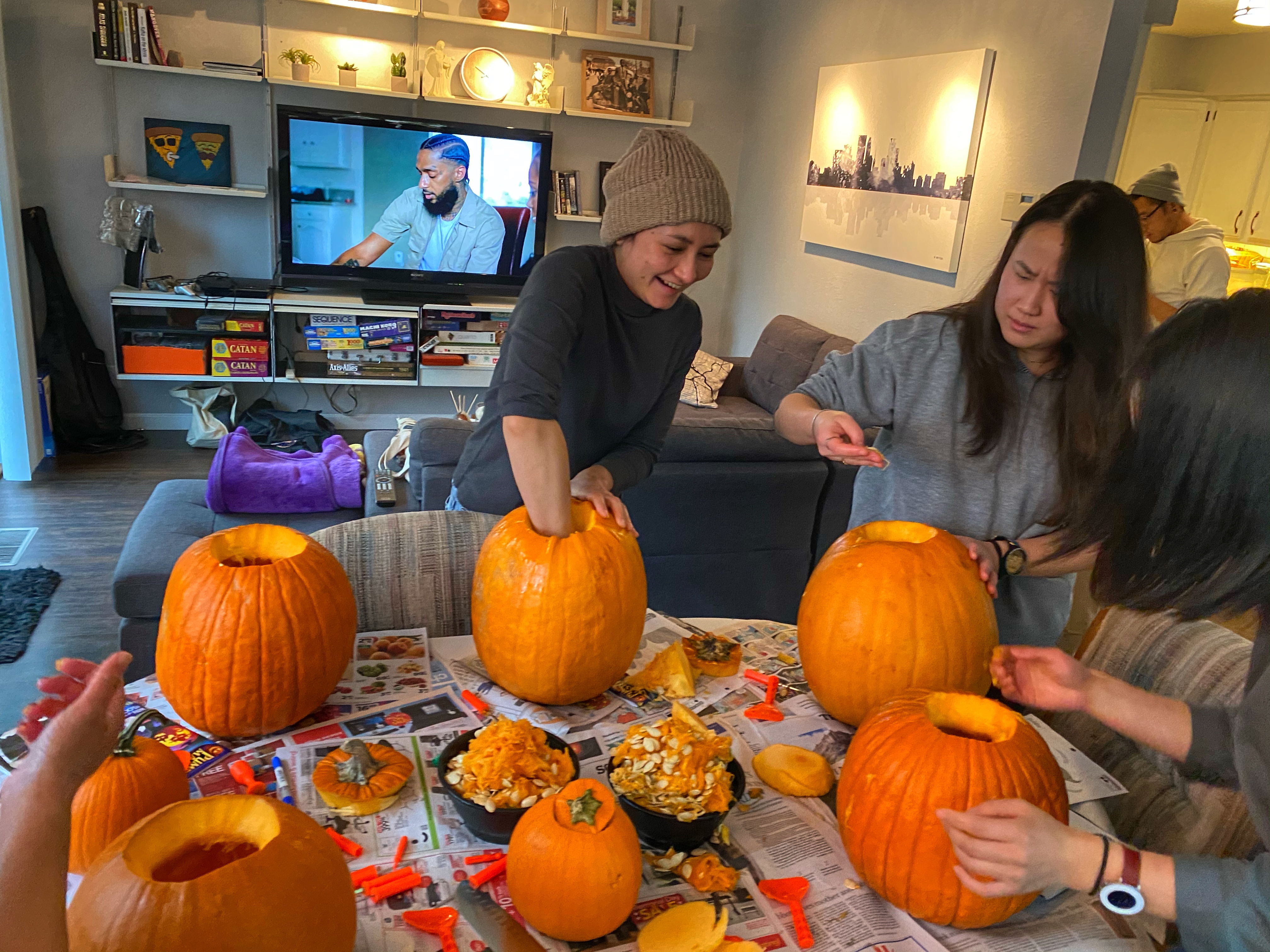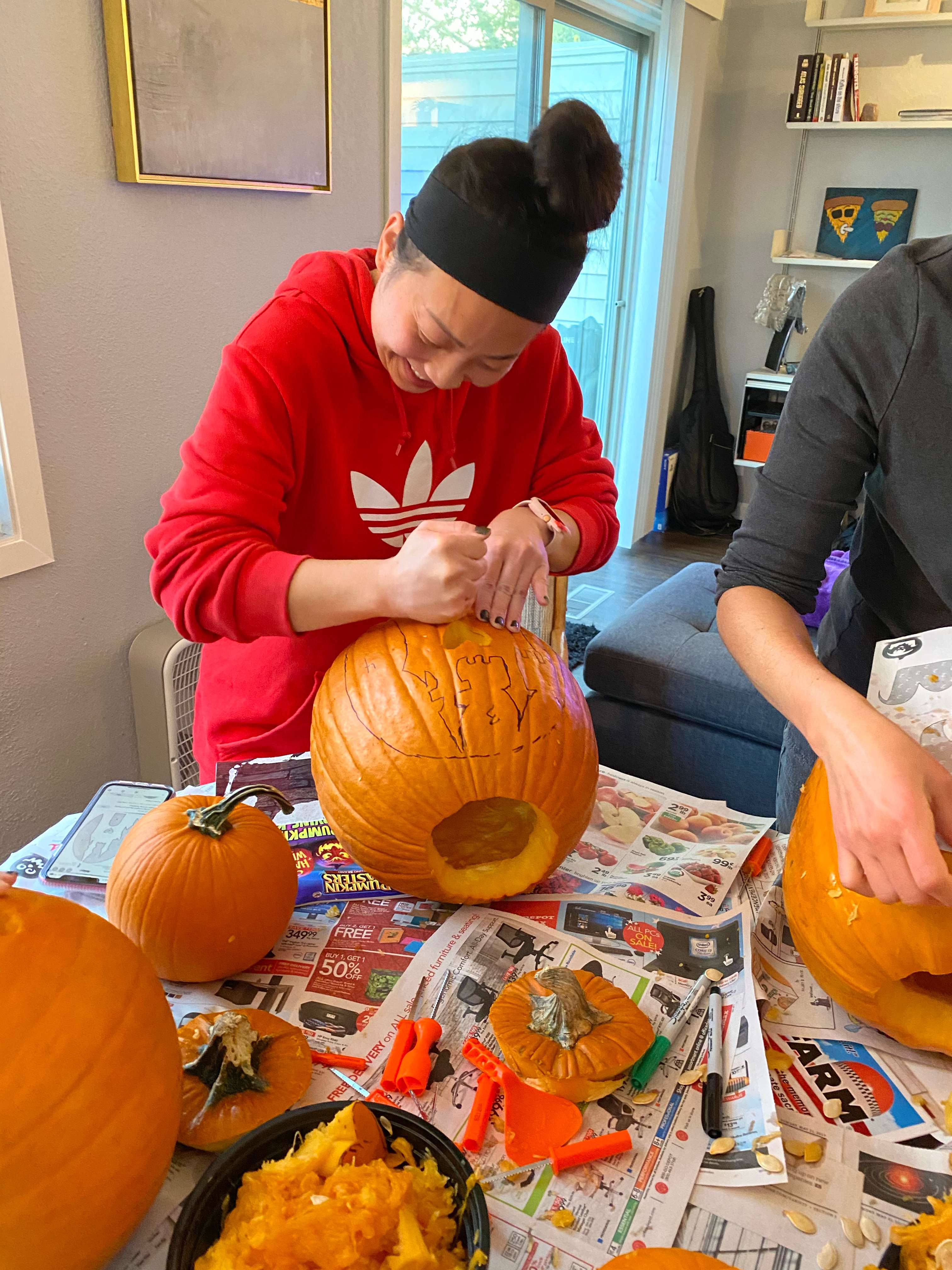 So, what will I be doing…because I know for sure there will be no house parties or gatherings for me this year. My costumes have been sold or packed away (and I’m trying really hard not to acquire and accumulate things). I went to a corn maze, but didn’t do the corn maze. I went to buy pumpkins from the pumpkin patch because pumpkin carving time! And of course, fall cocktails. I carved pumpkins with my social bubble humans in Minnesota. They had never carved pumpkins before, so we had to do a mini-lesson before they got started, but overall, it was a success and we ended up with cute pumpkins and delicious roasted pumpkin seeds.