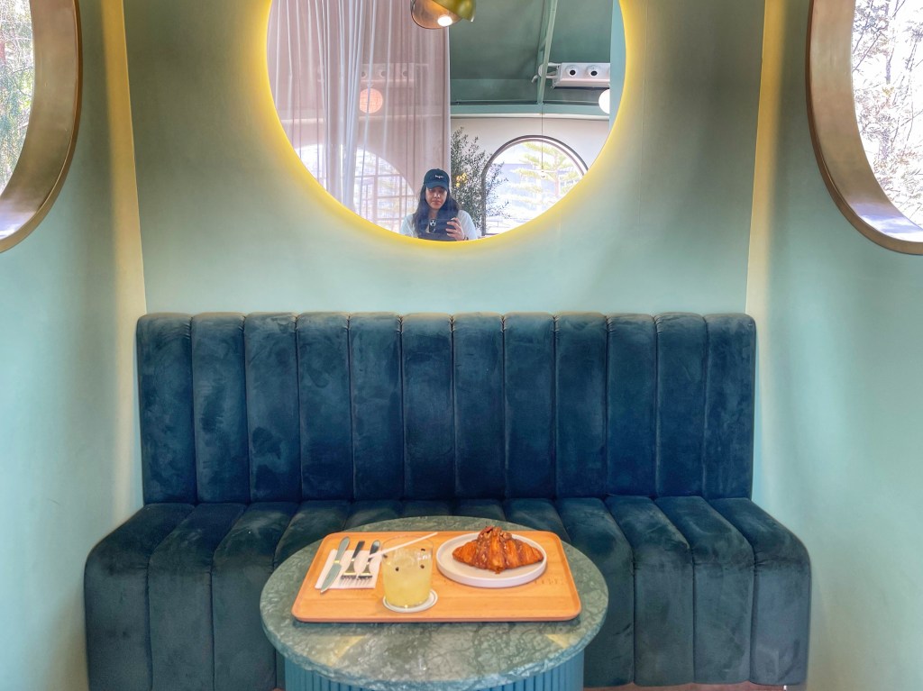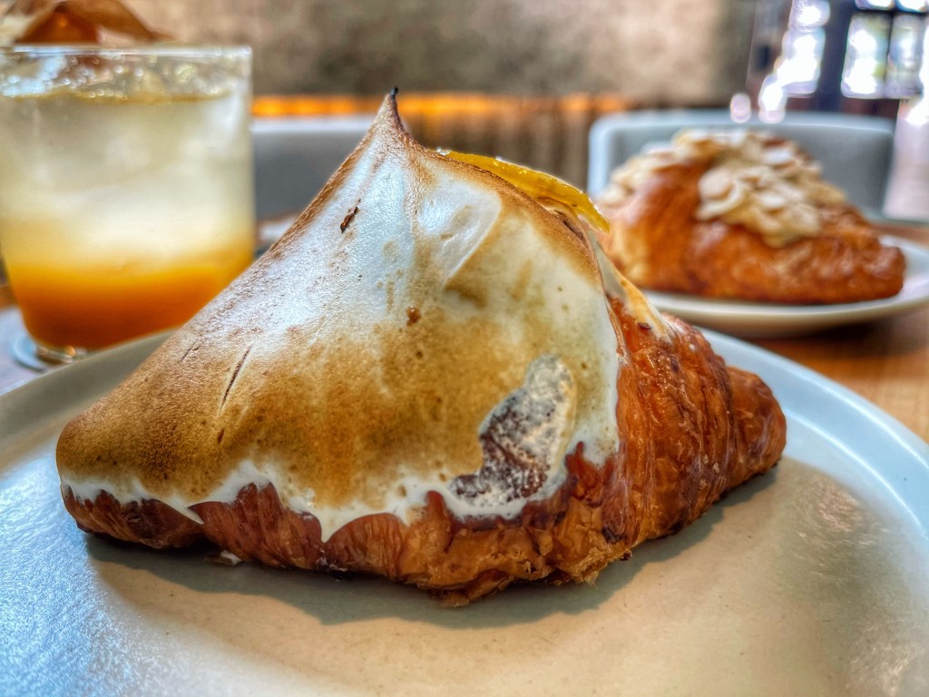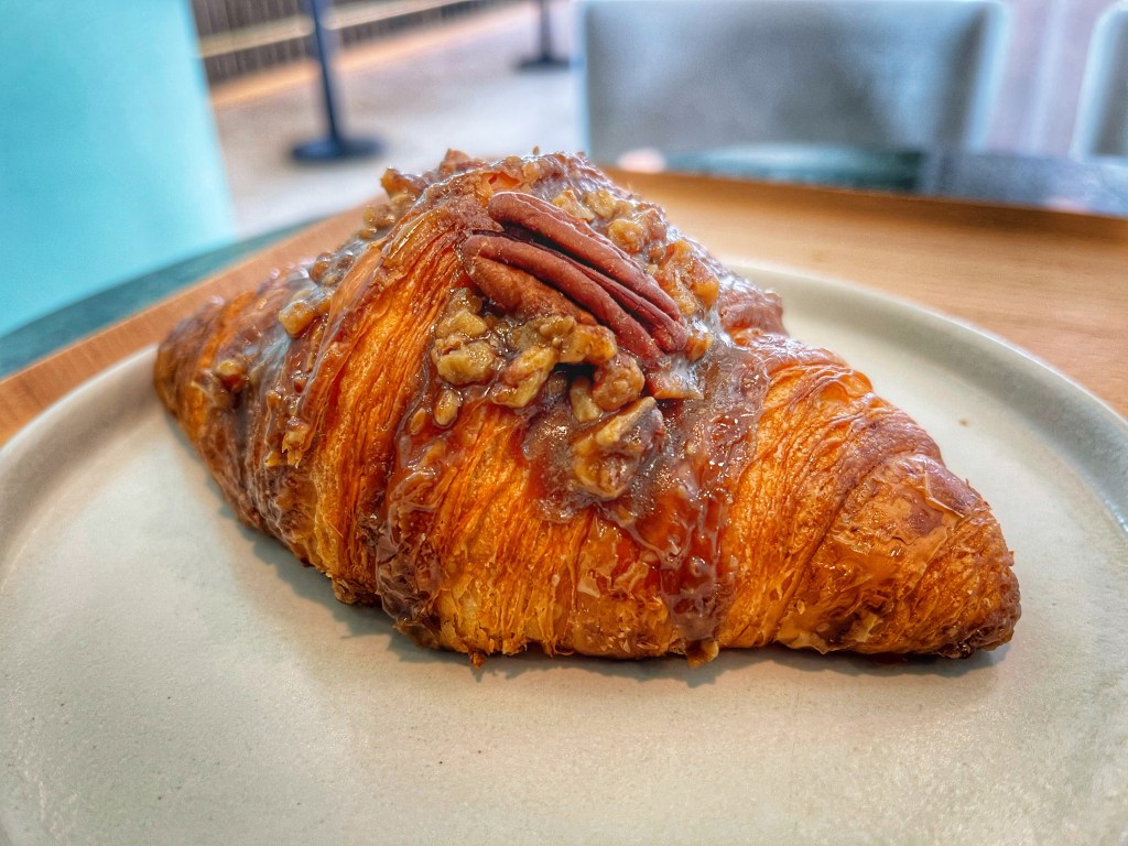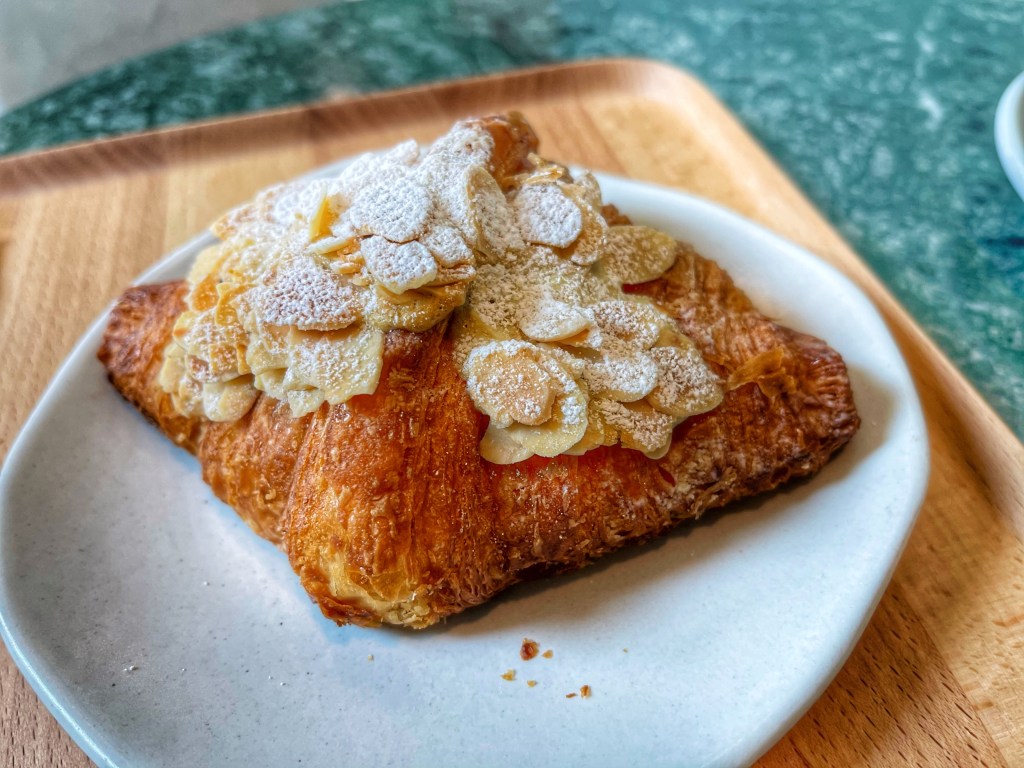 The space itself is super cute. It kind of looks like a spacious warehouse from the outside with a vary obvious entrance. Once inside, check your temperature, sign in and get a number. There’s only a limit of 6 croissants per customer. They also have coffee beverages and non-coffee beverages available. Once inside, it’s very spacious. There are small alcove like booths in the back and tables else where. It’s an Instagrammer’s haven for photo opportunities. So that’s cute and all, but we know I’m here for the food.