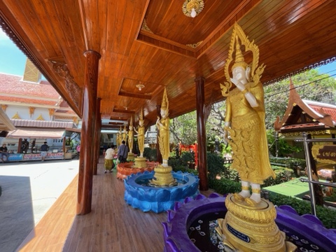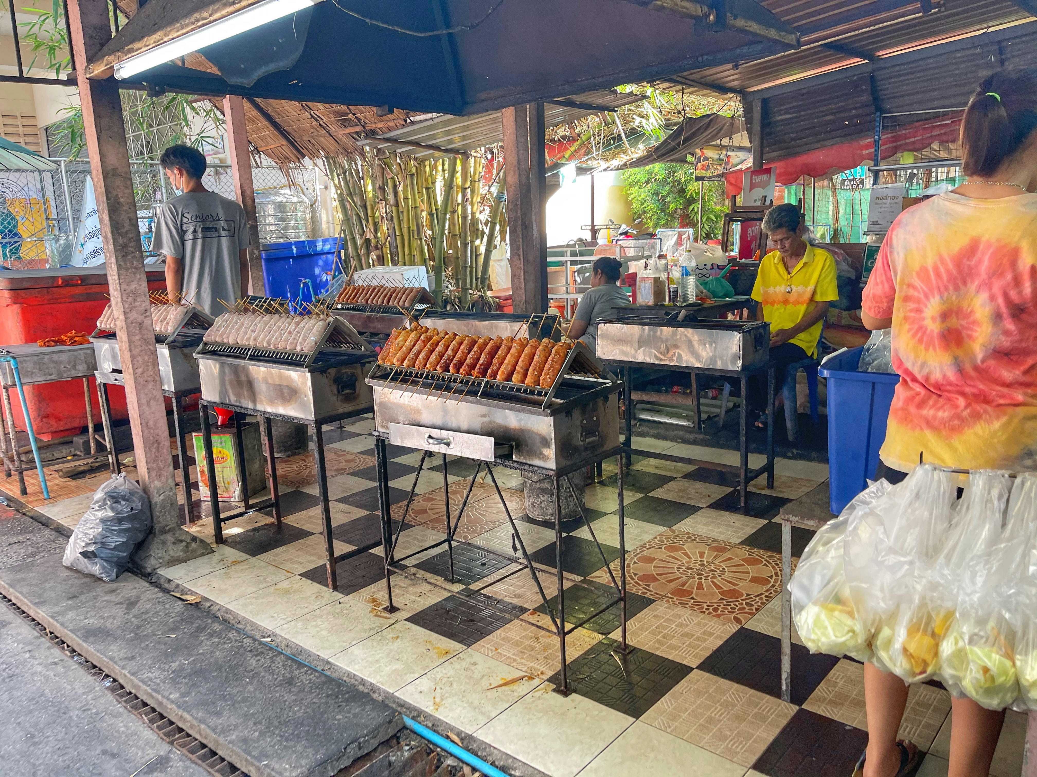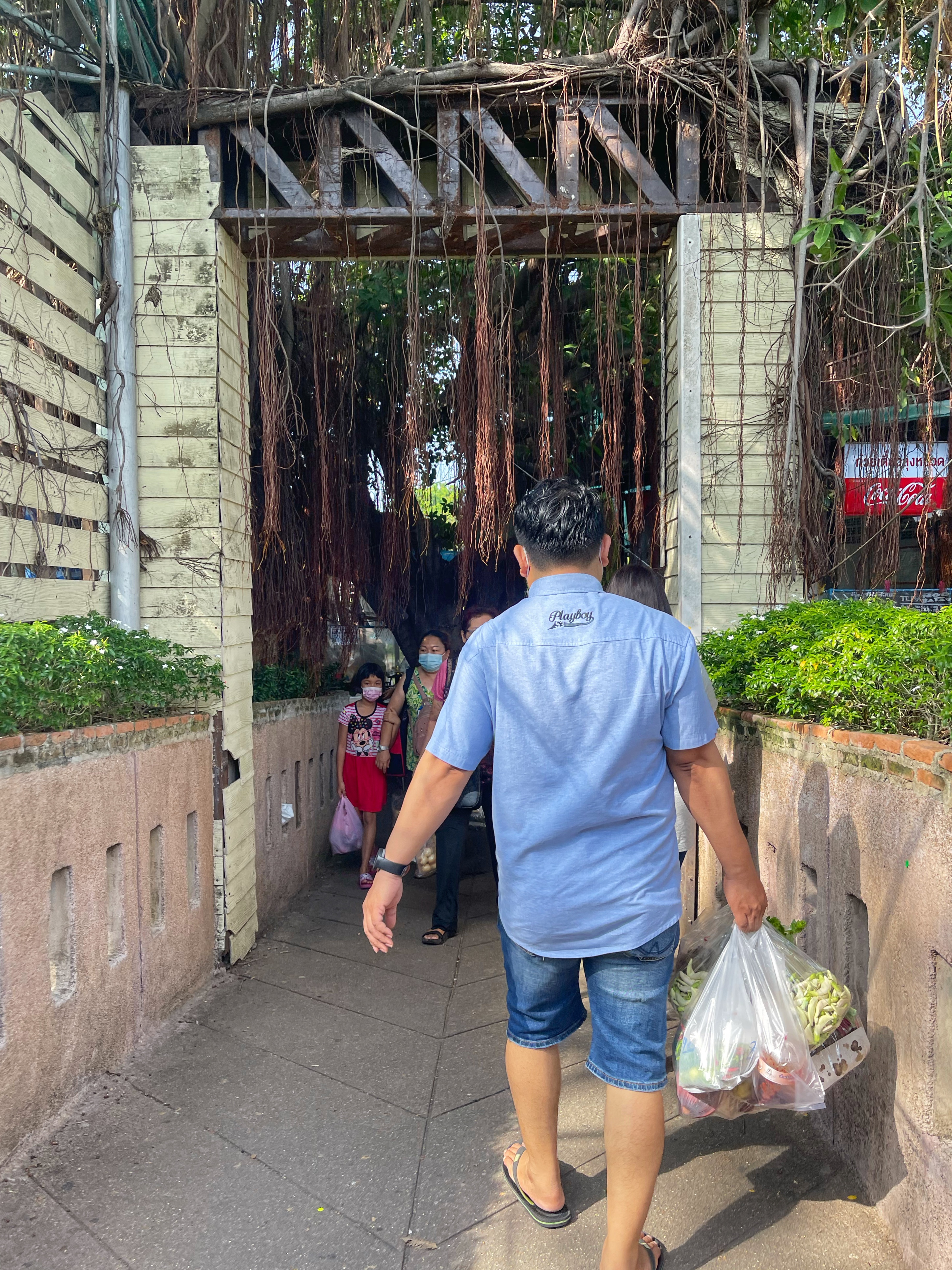 So, I really, really haven’t done much and when I do get out…we try to get everything done at once so we don’t have to venture out again. We did go early one day to the floating market. It was not as I was expected. It wasn’t really like a traditional floating market. All the shops were on concrete barges and it really didn’t feel like it was floating. You walked through the market like any other market. The only difference was that there were canals here and there and you had to cross the occasional bridge. There were no small boats along the canals. It was still nice. We went so early (and it was, apparently, the last day the market was to be open; due to COVID, they were closing again) that the market was fairly empty and it was easy to maintain social distancing. Not a ton of shops were open, but the important ones were. Like the sai oua (Thai sausage) shop was open…albeit a little later than usual, but they usually have a line…this time, no line. We were able to get breakfast, which was nice. My cousin bought a bunch of stuff for the house and to bring to her mother and brother.