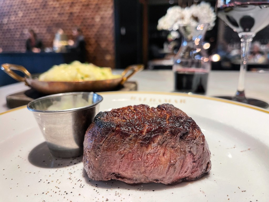 I had always wanted to try The Lexington. I’m not really sure why, but it had always been on my list. I thought it was fine American dining, but in actuality, it’s an old school steakhouse, kind of like Murray’s. It definitely has that old school supper vibes. There was dim lighting, carpet, a piano, spaced out tables, some booths, an old school wooden bar and other such things. The server we had was really good. The service itself was questionable. My Moscow mule was on tap, but still took a while to be served. Our steaks came out almost immediately after our appetizers were served. By the time we finished our appetizers, our steaks would be cold. My wine didn’t come out until halfway through me eating my steak. However, they did quick-fire my asparagus order. Although the food was good (the desserts not so much), the service was a turn off. Our server did apologize for the steaks coming out so fast.