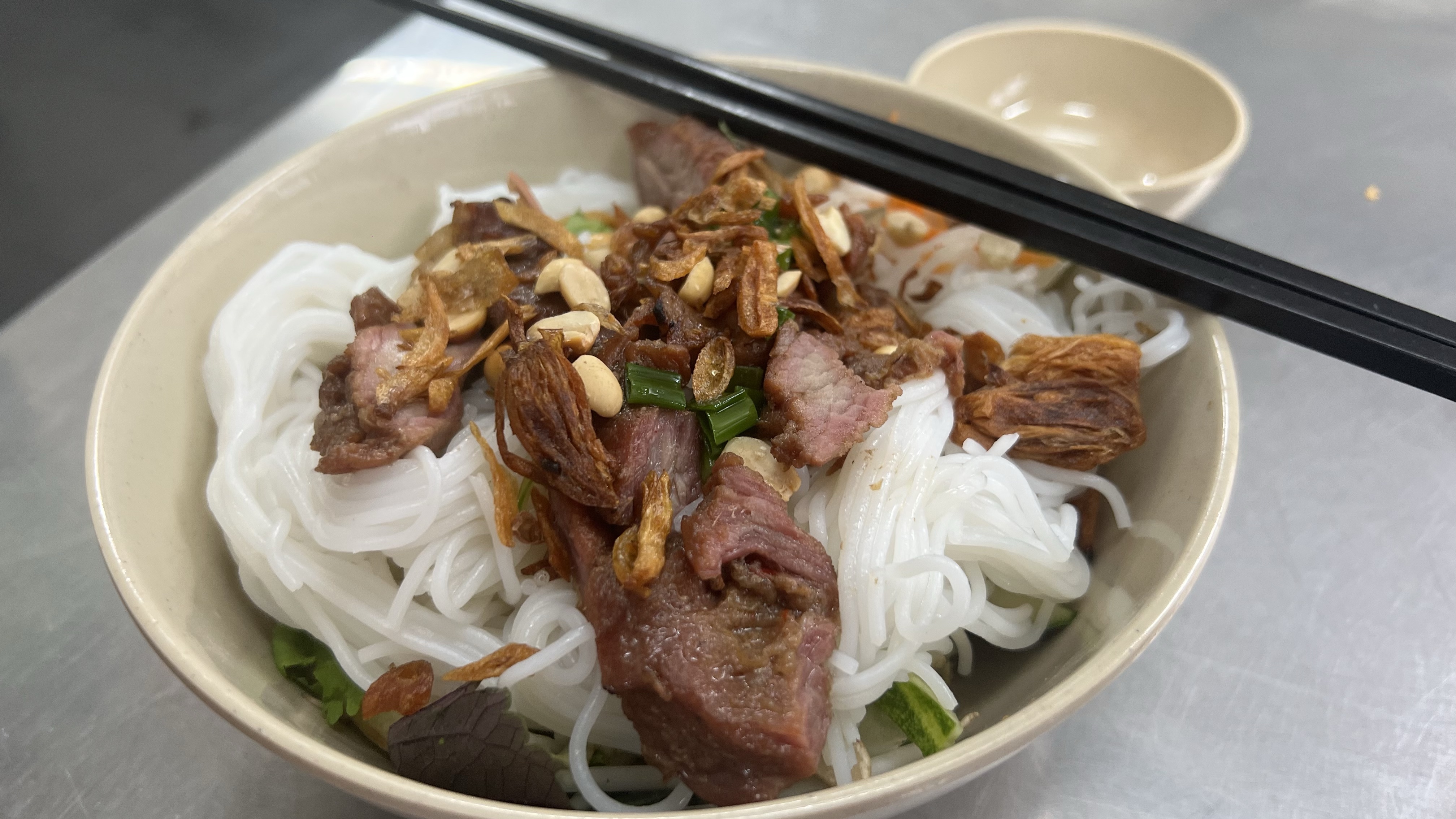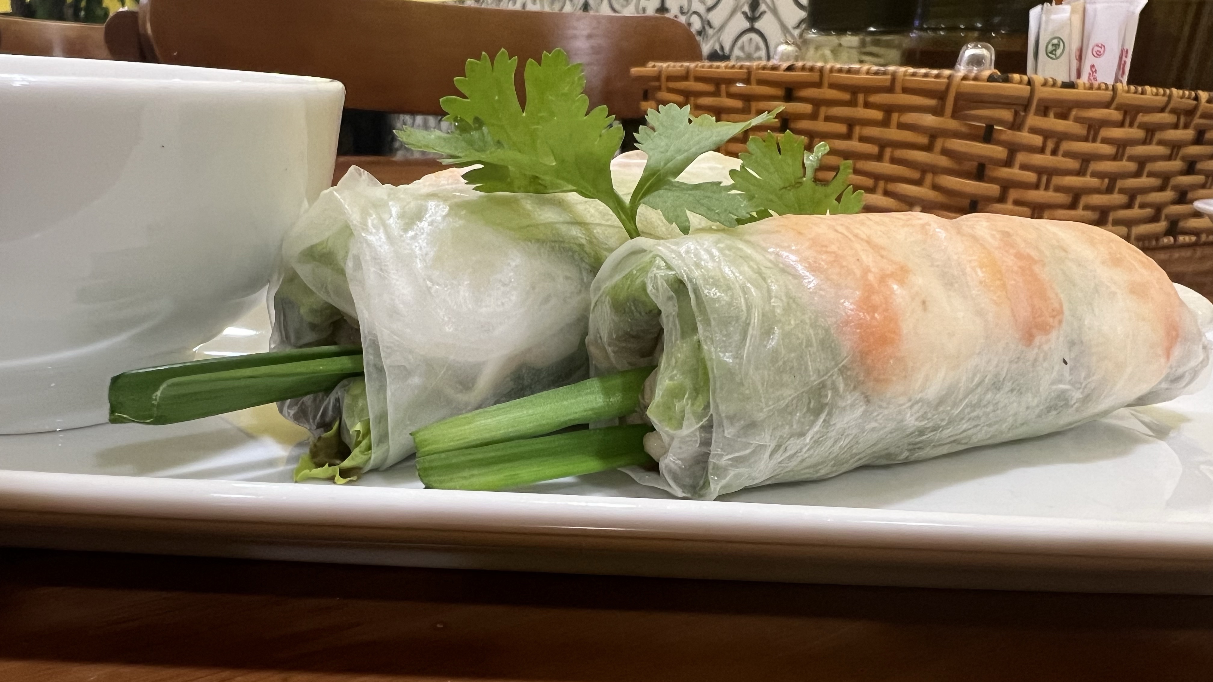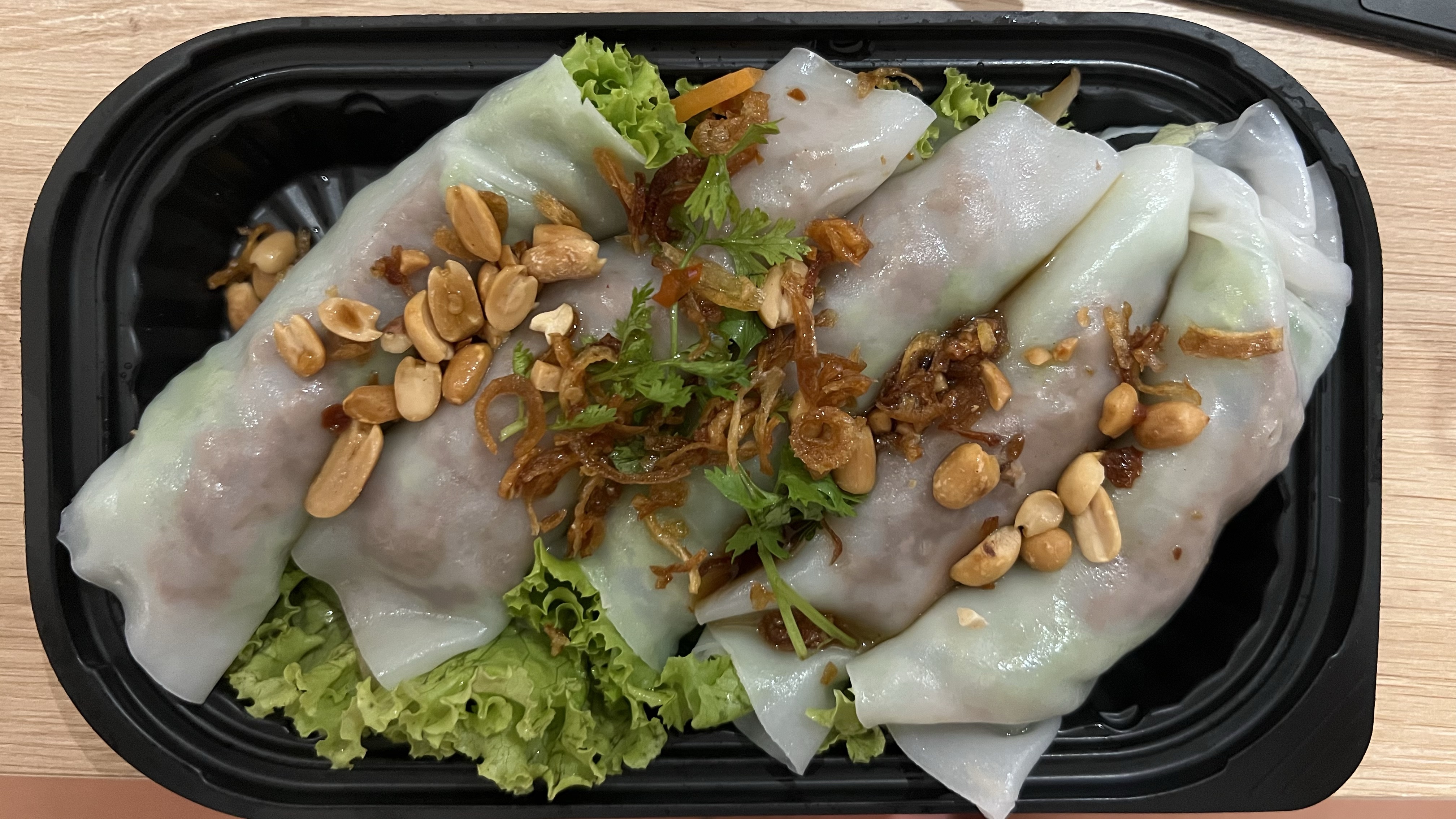Day 2 started off with a super cheap (less than $1) street banh mi (so good – I even ate the cilantro because it was much harder to take it out). I would totally get this again or EVERY morning. Then I was going to have some bun thit nuong (but was confused about how the hawker stall worked and it was completely full and I didn’t want to wait – I have more days here). I ended up having lunch for dessert (chocolate mint cake and the Marous special drink). Dinner was a bun bo hue hawker stall with SOOOO many people in line. I had to work this night, but was peckish, so ordered pho rolls for delivery. OMG, I would eat these ALL the time. How have I never known about them?