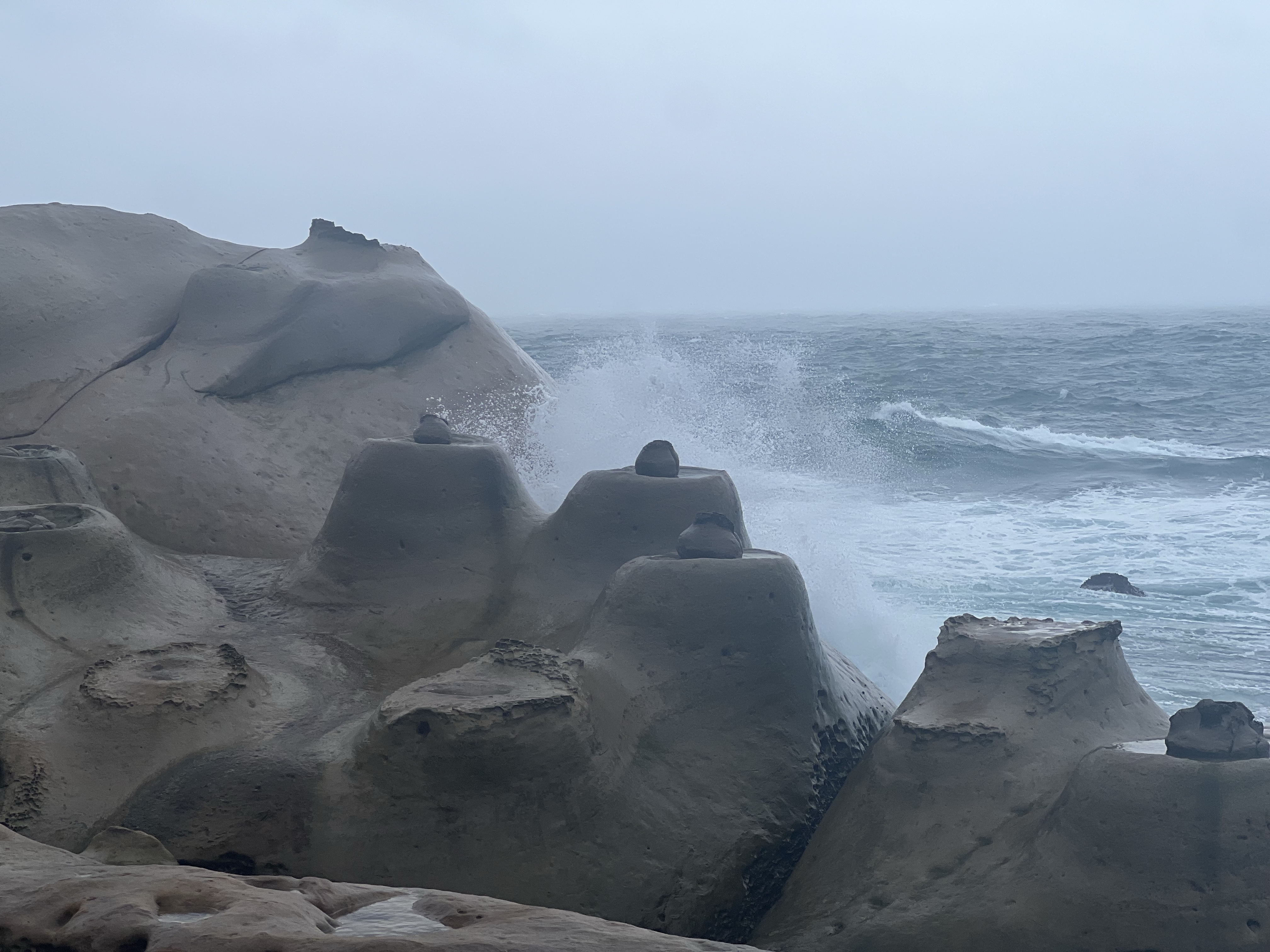 Day 2 in Taipei was day trip day. The rainy weather was not letting up at all, so we made sure to bring our umbrellas. I also had my raincoat. It was about a 1:20 min ride up to the Yehliu Geopark. This park is located on the northeastern coast of Taiwan. From the pictures, it gave me Giant’s Causeway vibes and I really wanted to check it out. It was cool and I loved be so close to the ocean again (as if I’m not near or in the ocean enough). After all the walking, we needed some refreshments. Anne ended up with passion fruit juice and I had a grass jelly drink (with giant jellies). Juifen Old Town was our next stop and about 40-ish minutes away. We had to stop at the bus parking and take a local bus in. The alleyways are sooooo crowded and crazily filled with people (and umbrellas). Our first snack of the day (other than breakfast and bananas) was fried cheese sticks. This was followed up by a random restaurant where we had: rice cakes, pork cheese and fried tofu. Venturing further in after our “snack” we stopped for some more substantial food and got: shrimp fried rice, stir-fried water spinach, and Taiwanese beer. On our way out of the alleyways, we picked up more cheese sticks, but also stuffed (dense) pancakes (custard cream, red bean, sesame).