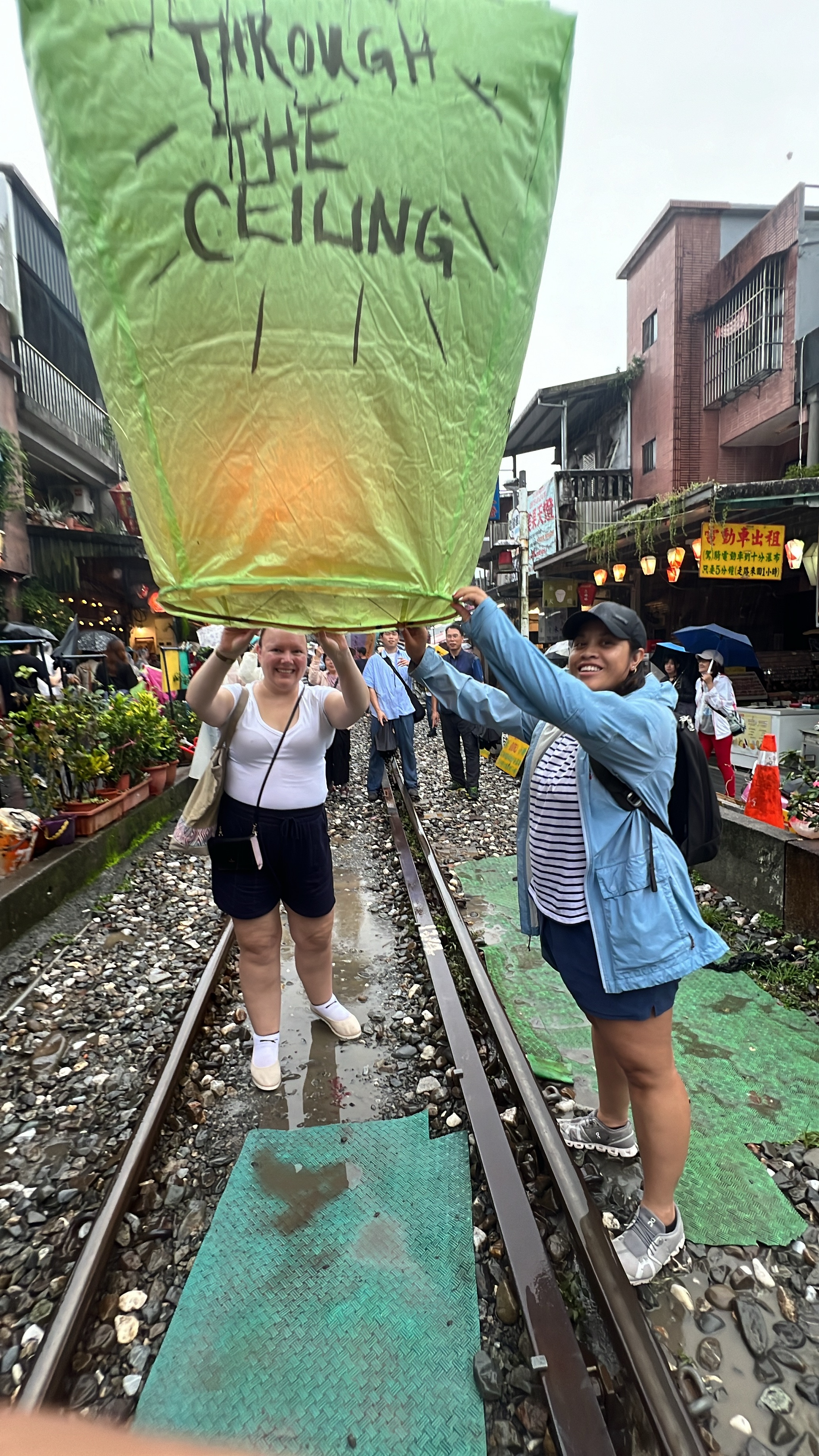 The next and last stop of the day trip was Shifen. In Shifen, we’d get to indulge in xiao long bao and peanut ice cream rolls (and really anything else that struck our fancy. This was the other town where I’d get to do something I really wanted to do: release a paper lantern (which is possible even if it’s raining…or drizzling). For our lantern, Anne chose green. Green stood for vigor and success. We covered it with our wishes and released it into the gray sky. It was cool. Would totally do it again.