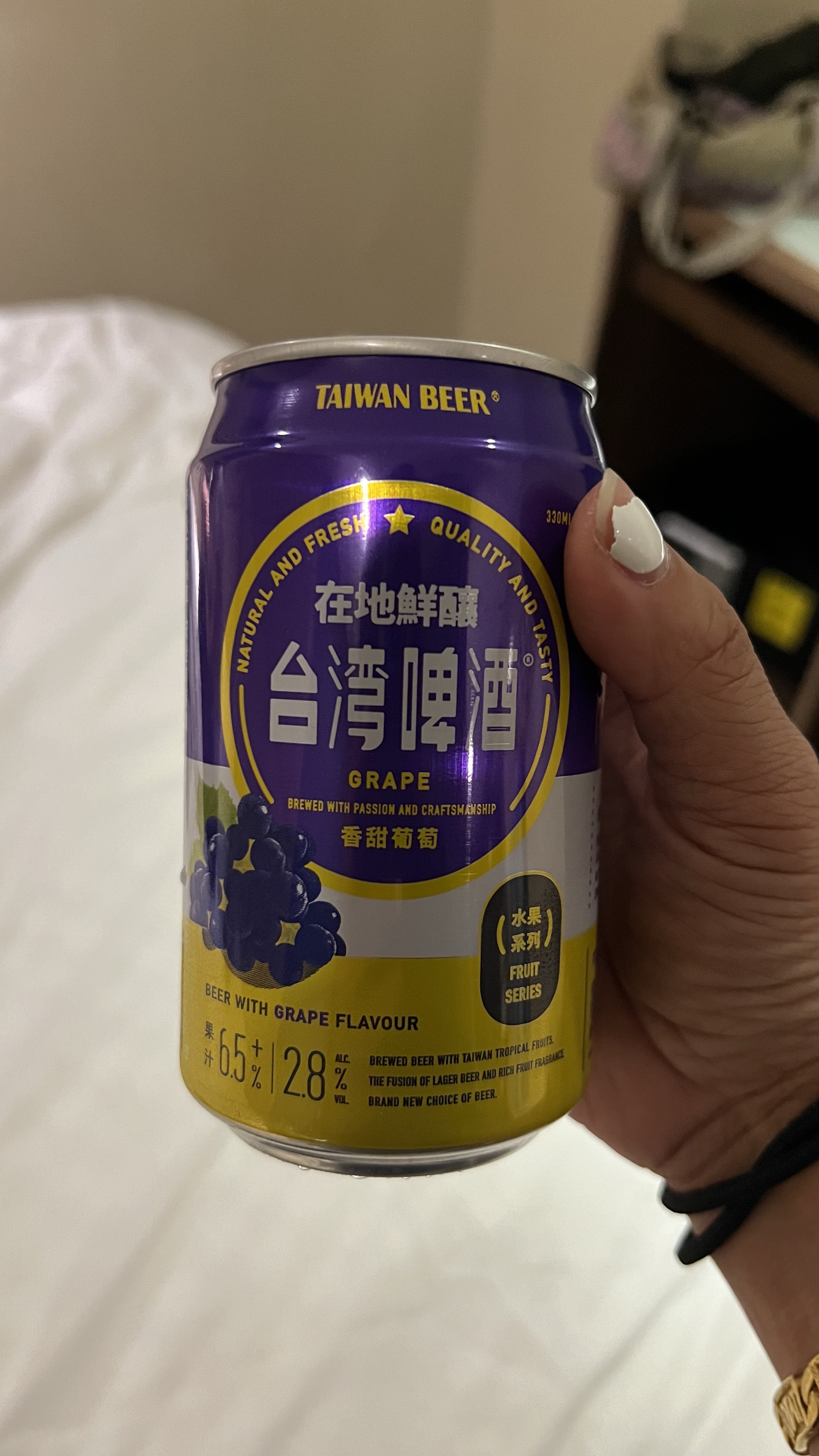 That night, instead of straying to far. We decided to check out the night market behind our hotel. Anne got a corn & cheese pancake. I got a spiced bacon wrapped chicken sausage. We ended our day out with bubble tea from Coco. We ended our night with fruit flavored Taiwanese beer, first pineapple, and then grape. They both tasted like fruit juice.