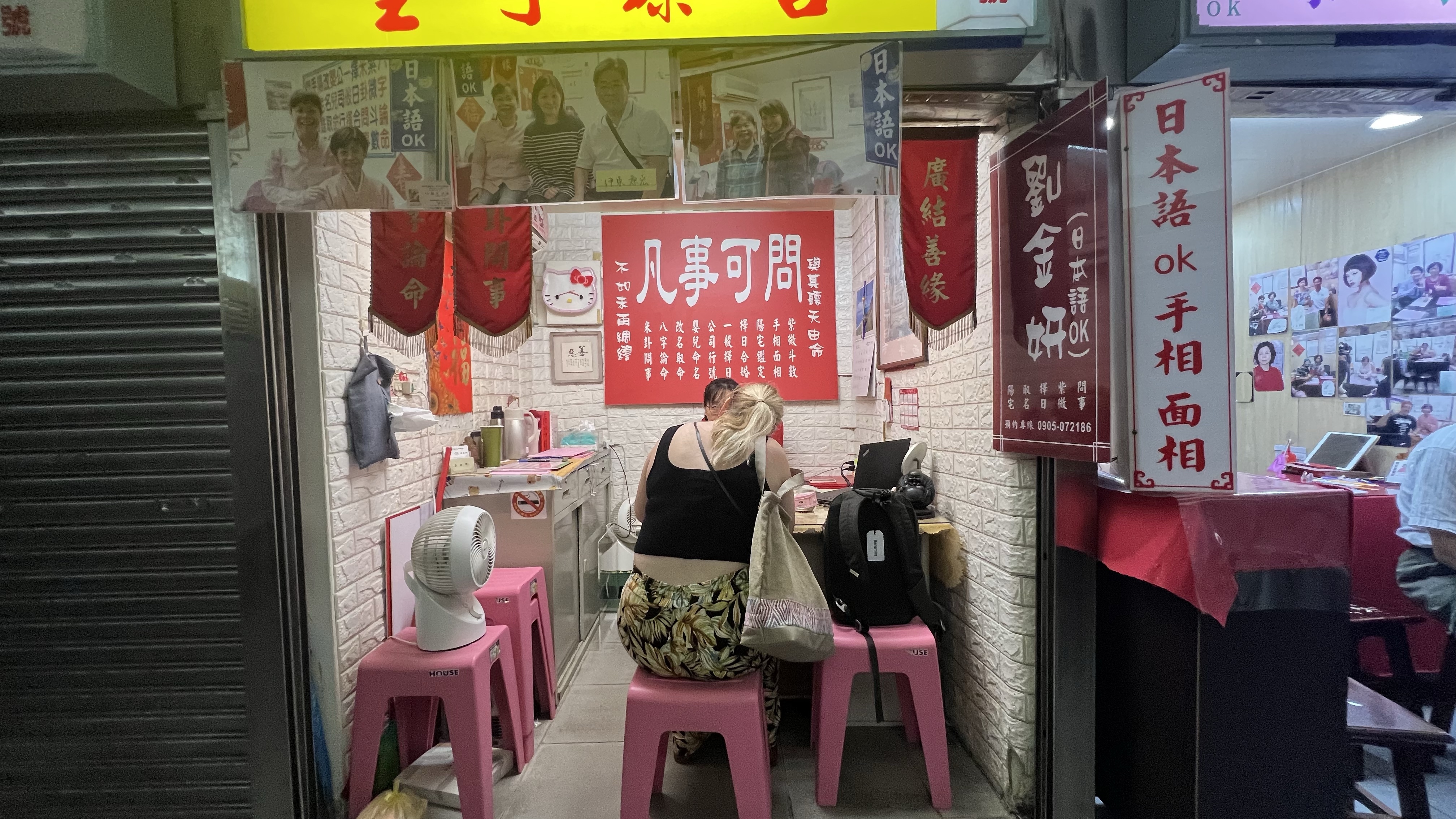Breakfast on our last day (the day we’d leave Taiwan) consisted of a youtiao pancake and an egg and cheese pancake. Both were enjoyed with unsweetened soy milk. We had time to kill and so we decided to go get our fortunes told…by birds. I also did a palm reading in which I was told I think to much (dude, my hands have SO many lines). Before our fortunes were told, we enjoyed a nearby tea house (LiuYu Teahouse) and had some really good tea. I could probably sit in there all day.