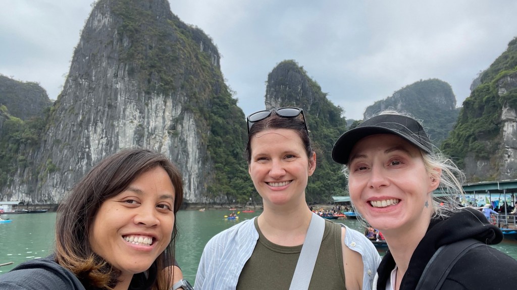 Liz, Marie and I headed for Hanoi after Singapore. Hanoi would be our first city in Vietnam. We were travel-worn and hungry and thank goodness, a very nearby chicken pho place was still open and it completely hit the spot. We spent a day exploring Hanoi (and saw the infamous water puppet show). We also took a day trip out to Ha Long Bay. We saw some pretty amazing views. There were also, sooooo many people.