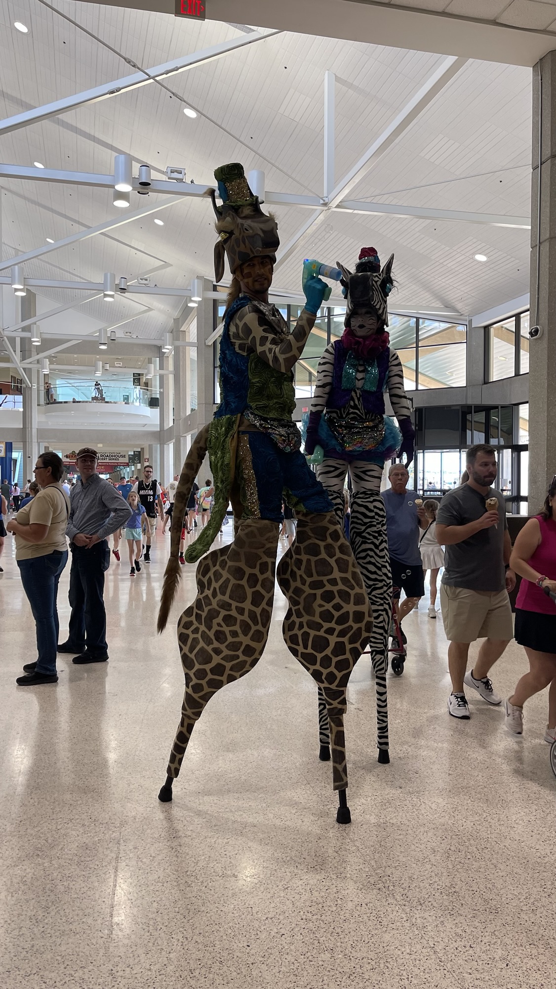 It was laid out in a donut shape, thus the center was inaccessible and you had to walk around. There was an underground to cut through the center, but we didn’t use it. Some unique features: Indy Dunkers, Wolves of the World, free tractor shuttle (which was actually not that unique we found out), canstruction, a cheese sculpture, Hoosier Santas, vinyls tribute and the watermelon seed catapult contest (used to be a spitting contest, but then COVID happened).