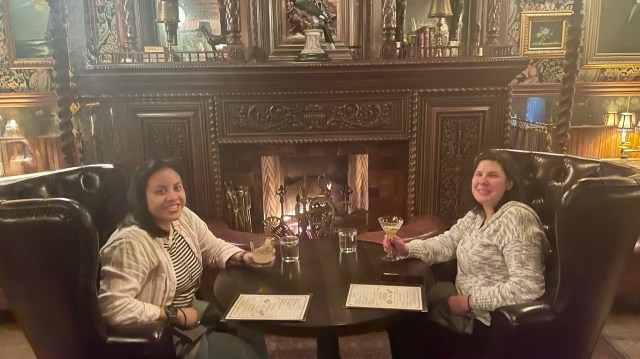So, I didn’t know much about Armitage Alehouse other than it was quite popular and had a pretty damn good burger. I learned to find exactly why it was so popular. It’s a bigger space than I thought. The decor is super cute (think fancy British pub with fancy restaurant vibes). We both would’ve been happy sitting at the bar, but I was super glad we didn’t. We ended up at a regular table in the backroom, but asked if we could move to the even fancier table (leather, high-back armchairs – next to the fireplace).